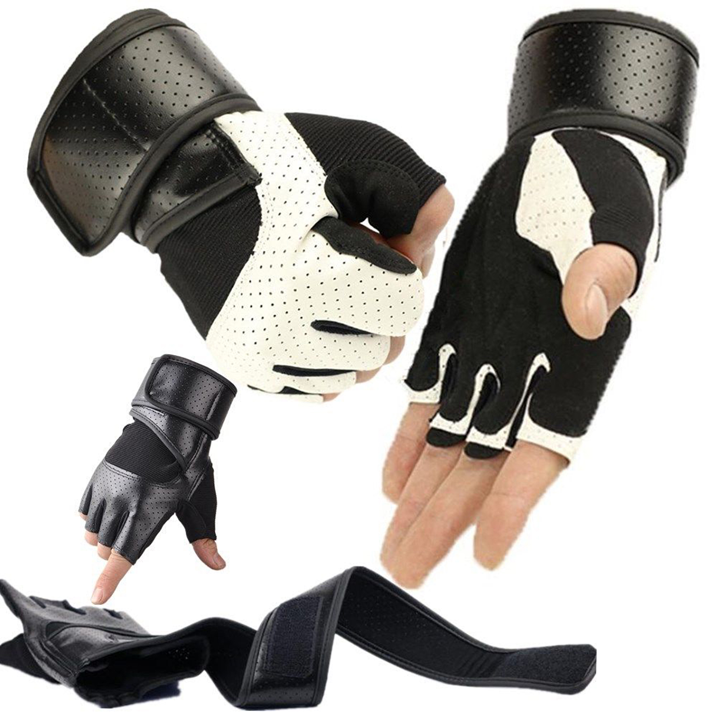 Men Cross Fit Gym Fitness Leather Gloves Weight Lifting Training with Wrist Wrap Strap