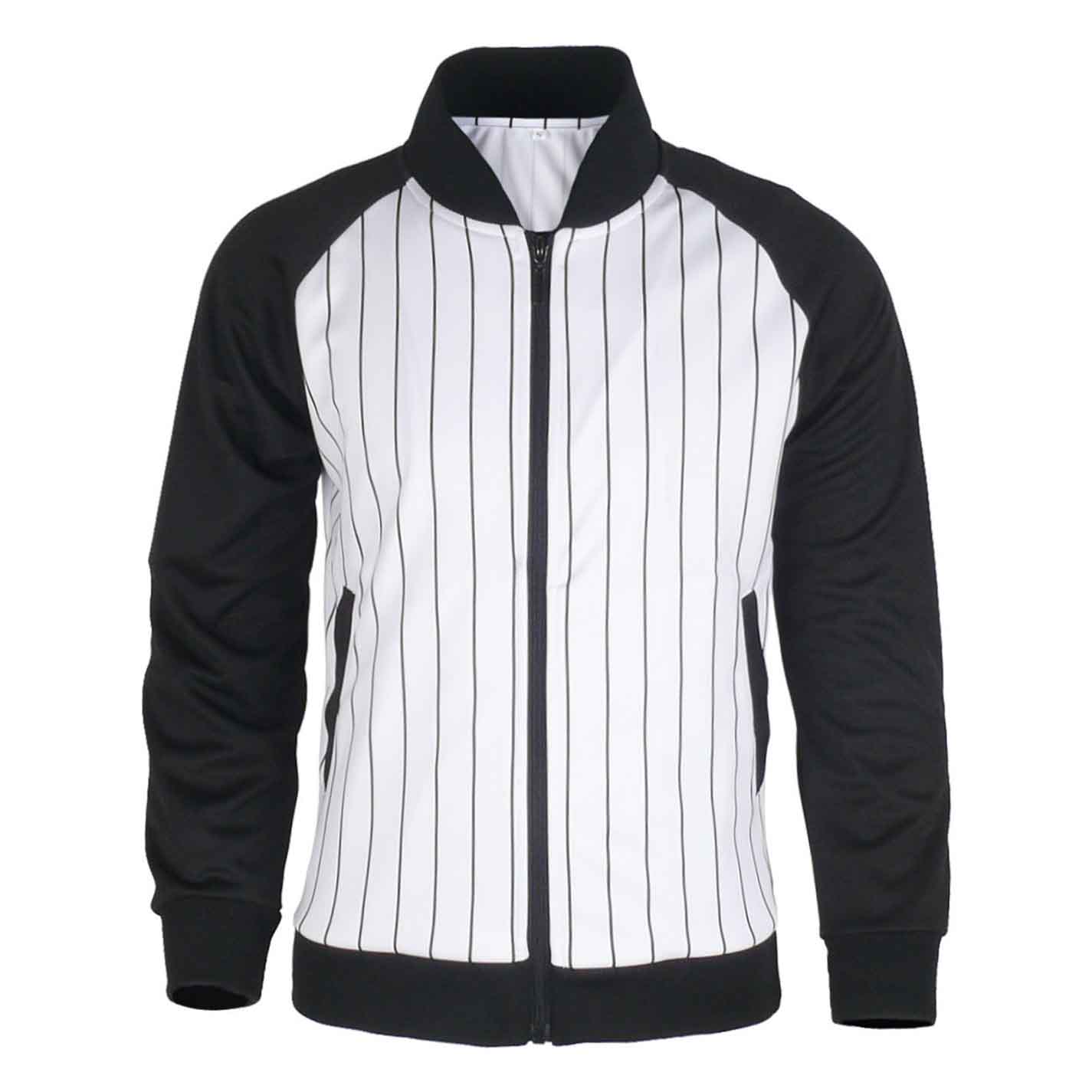 New Mens Baseball Striped Zip Up Track Top Jacket Team Uniform Jersey Shirt